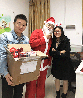 推開(kāi)門(mén)走進(jìn)來(lái),辦公室正放著悠揚(yáng)的音樂(lè)Merry Christmas,緩緩流淌的祝福溢滿了歸人的夢(mèng)境。辦公區(qū)域,慈祥的圣誕老人微笑著拿著禮物等待上班的人兒,給他們帶來(lái)一天的喜悅和祝福。