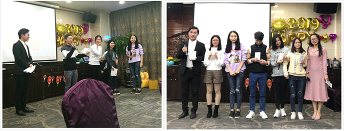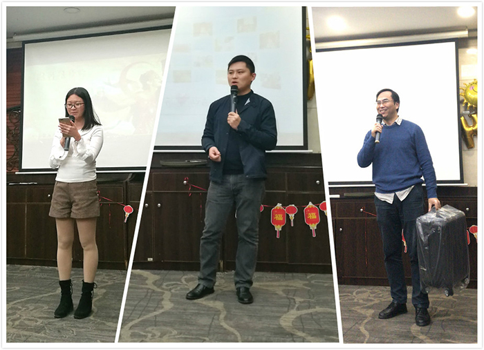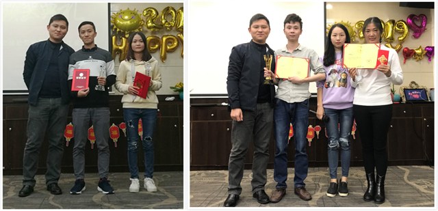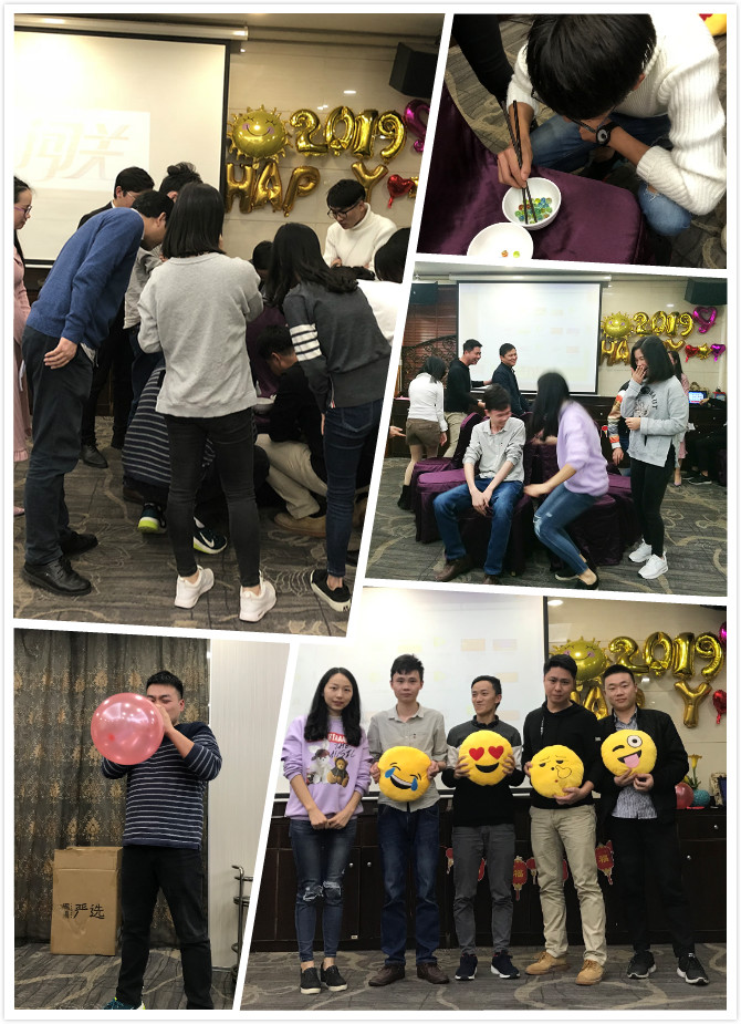 由游總迎新晚會前的致詞宣告開始,我們的團隊成員爭先展示自己,為大家獻上了精彩紛呈的節目。采購部的Liqi妹妹用德語朗誦了一首愛情詩歌,支持部和推廣部的小伙伴們則來了個舞蹈串燒,銷售部的大合唱激情澎湃。晚會上大家還一起玩游戲,搶椅子,吹氣球,玩的不亦樂乎。之后的抽獎環節,大家更是興致高漲,到達晚會高潮。再看看頒獎環節,這是對上一年表現優秀的個人予以表彰,對他們的工作予以肯定,我們的每一個成員都是公司重要的一份子。最后則是團隊晚宴,酒足飯飽歡聲笑語中,2019迎新晚會圓滿結束。