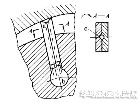 為減少兩葉片間的密閉容積在吸壓油腔轉換時因壓力突變而引起的壓力沖擊,在配流盤的配流窗口前端開有減振槽。
