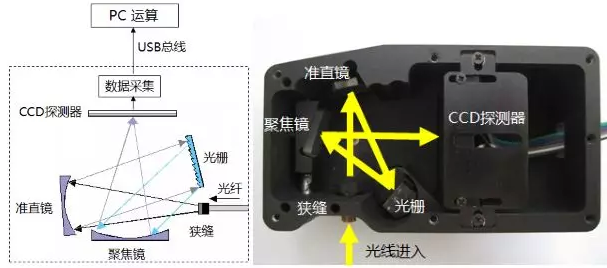 帶制冷的高端背照式CCD探測器,使用交叉Czerny-Turner光路,能夠高效抑制雜散光,使光譜儀無論在信號動態范圍還是測量精準性上均有極明顯改善,可獲得最高的測量靈敏度和信號穩定性