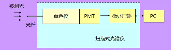 機械掃描式光譜儀通常使用光電倍增管(PMT)作為光電探測器,PMT是一種對紫外光、可見光和近紅外光極其敏感的特殊電子管,它能將微弱光信號通過光電效應轉變成電信號輸出,使光信號能夠被測量。