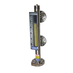 JERGUSON液位計連接到過程容器。該腔室或“柱”包含一個帶有永磁組件的密封浮子,該組件隨著工藝容器中液位的變化而上升和下降。浮子中的永磁組件與指示器磁性耦合,指示器安裝在儀表柱的外部,但與過程液體完全隔離。當浮子磁鐵組件在腔室中上下移動時,指示器標志會旋轉,從而提供高度可見的指示,以指示容器內部的液位。對于許多應用,磁性液位指示器是視鏡的有吸引力的替代品。它們提高了可視性,減少了維護,并消除了與密封玻璃相關的泄漏路徑。對于易燃或有毒服務的許多用戶而言,減少泄漏路徑至關重要。