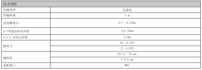 4)WRP60測頭是無線電傳輸觸發式測頭,適用于各種機床。兩個顯著特點一是電池壽命長,二是緊固的結構使它能夠安裝長度達1m的碳纖維加長桿。