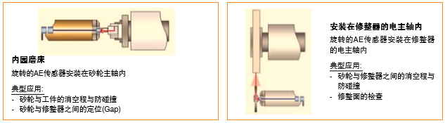 3、 分離式AE傳感器,表面傳播的超聲波傳感器,在旋轉部件(轉子)與固定部件(定子)之間通過非接觸傳輸信號。旋轉部分由分離的壓電傳感器 和信號傳送部分組成。傳感器可以制作成適合于具體應用的尺寸。