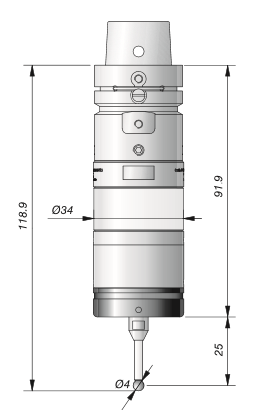 MARPOSS無線傳輸測頭WRP34P測頭帶有一個專用HSK32刀柄和4mm直徑紅寶石球陶瓷探針(25mm),并與WRI接收器兼容。新型WRP34P無線電傳輸觸發式測頭是用于小型3至5軸加工中心和銑削中心的高性能解決方案。基于創新的Marposs壓電晶體系統,WRP34P測頭設計緊湊,能夠提供極好的多方位重復性。