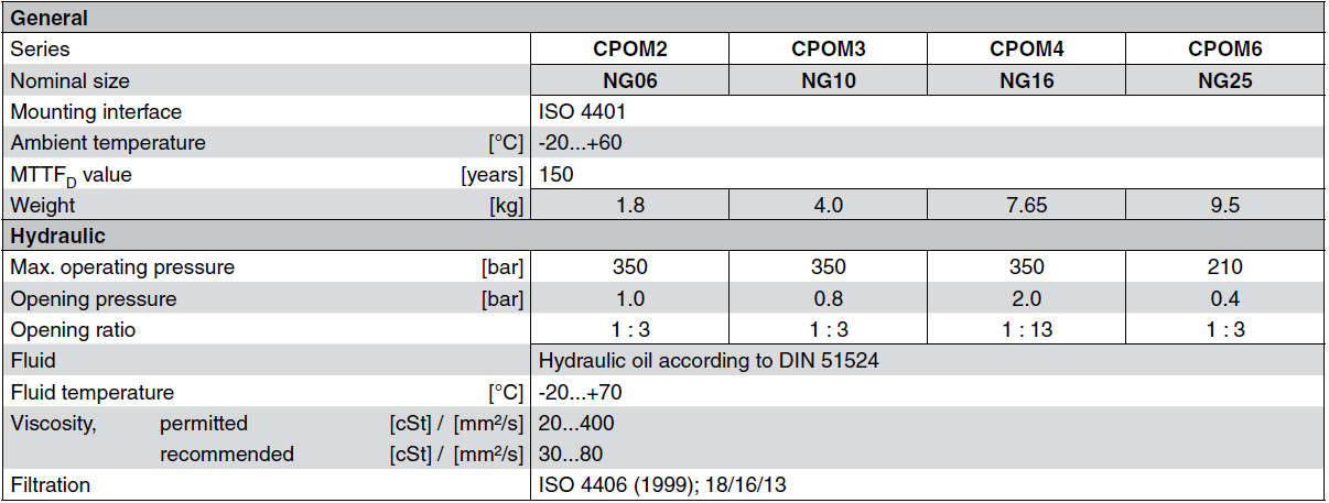 PARKER止回閥CPOM系列產品參數: