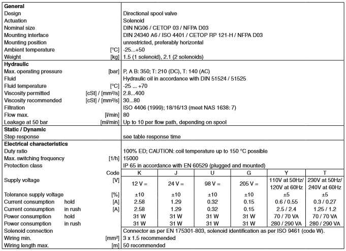 NG06方向控制閥D1VW系列可提供高功能限制80l/分鐘,節能降壓。各種各樣的閥芯選項允許設計液壓回路的數量不受限制,使用8瓦特線圈,經過ATEX認證,該閥也可作為夾層式。