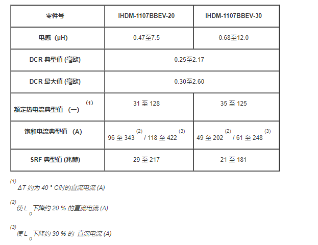 2、美國VISHAY電感器IHDM-1107BBEV-20/30特點